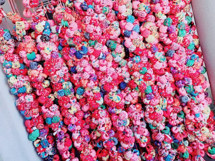 仏堂の周りにたくさん結びつけられている、