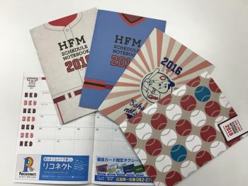 広島FMさん発行の2016年スケジュールノートにリコネクトが協賛、広告掲載してます!4種類あるカープとのコラボデザインがステキ!
