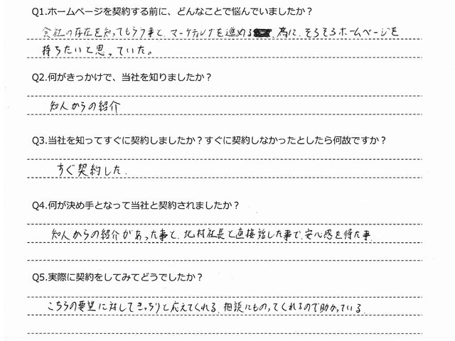 - 知人からの紹介があった事と、北村社長と直接話した事で安心感を得た事。