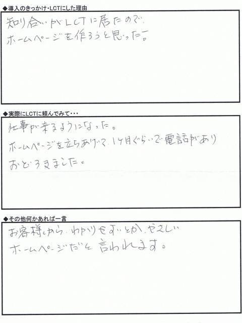 お客様から分かりやすいとか、やさしいホームページだと言われます。