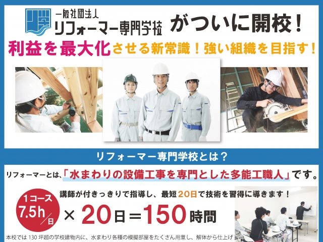 広島県呉市 水まわりリフォーム専門多機工職人育成学校のリフォーマー専門学校 様