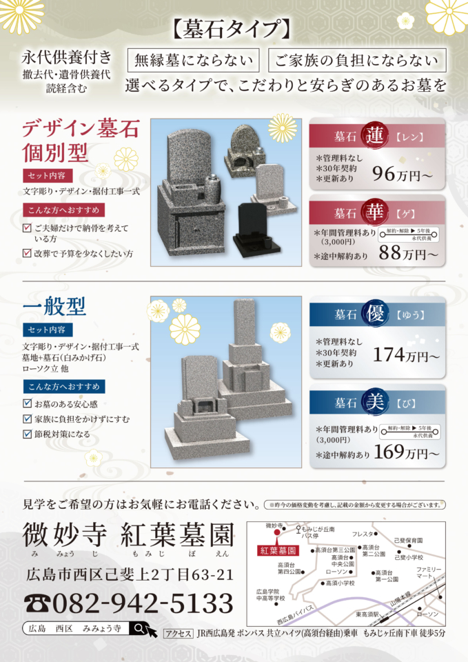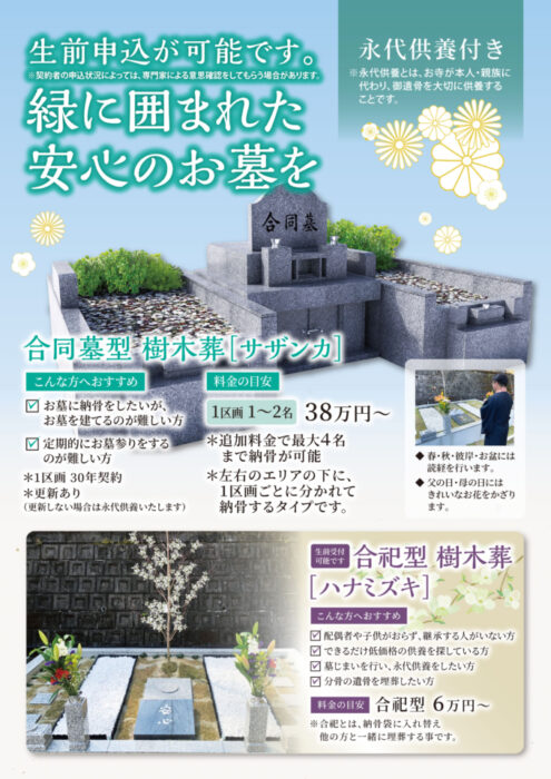今回は墓園メインのチラシとして制作いたしました。