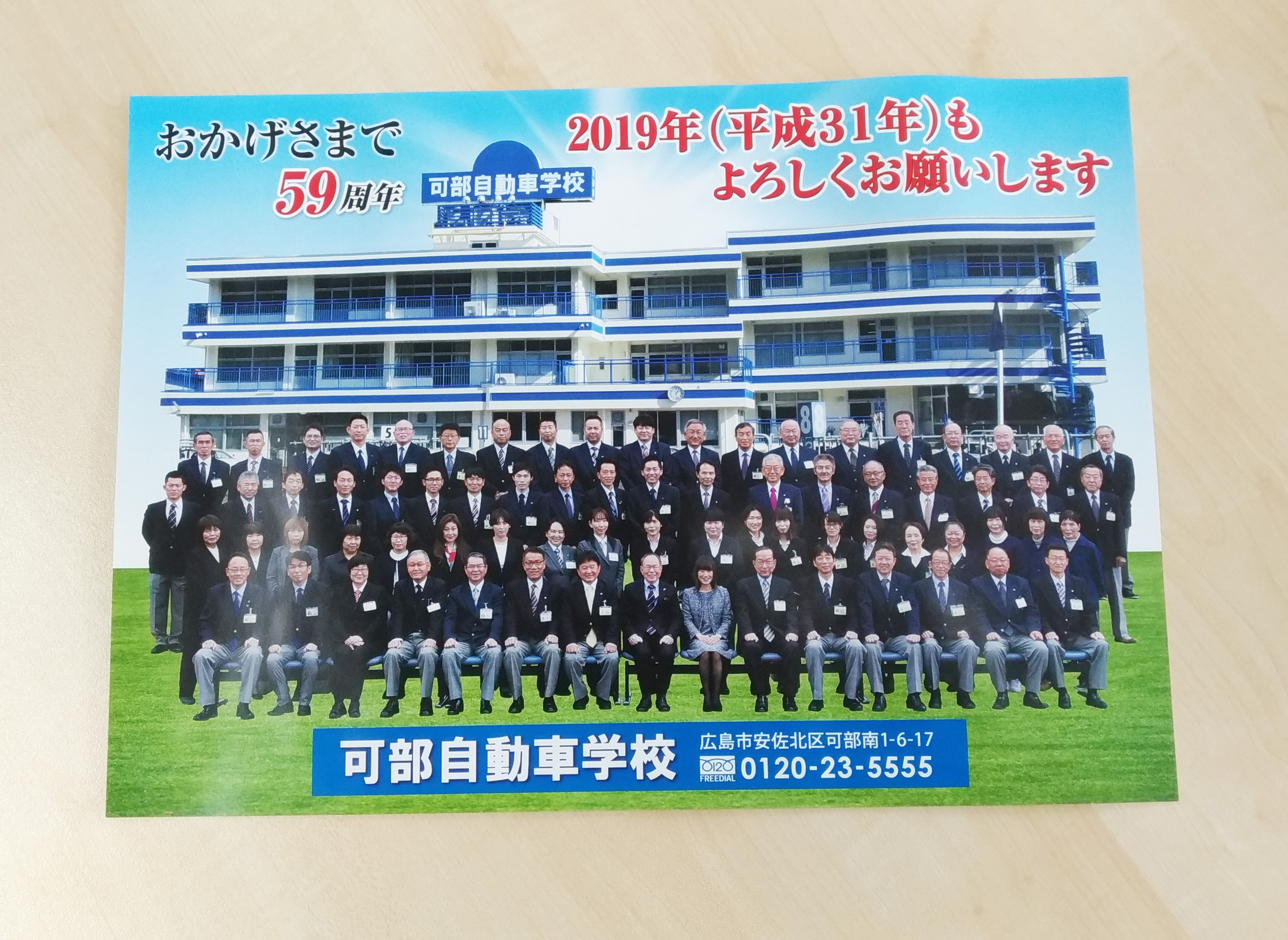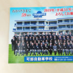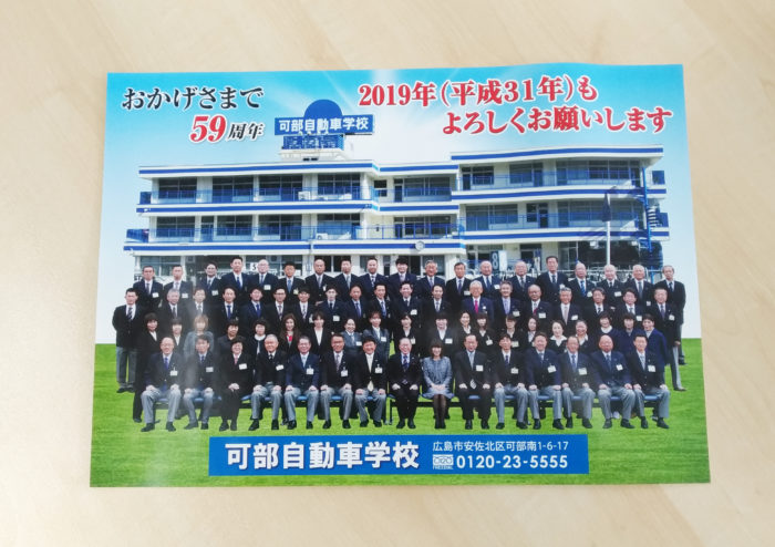 ●B4仕上がり光沢紙の新聞折込みチラシデザインをさせていただきました。●学校校舎を背景に可部自動車様の印象を前面に大きく配置しました。